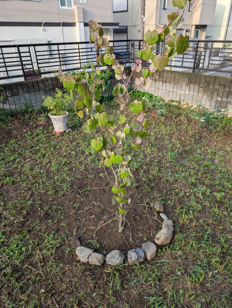 暑い中物色していると、親切な職人さんが希望の木を見つけてくれました。それがこのハートカズラの木です。シンボルツリーになりそうです。