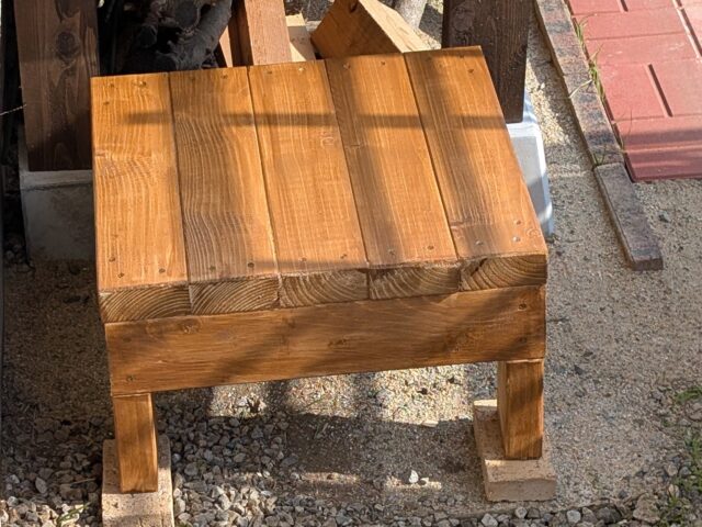 園芸 大工庭へ降りるステップ作をつくりました。塗装して設置完了です。
