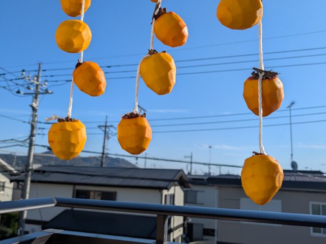 お知らせ 日常干し柿を吊るし始めてから10日がたちました。大分痩せてきまし …
