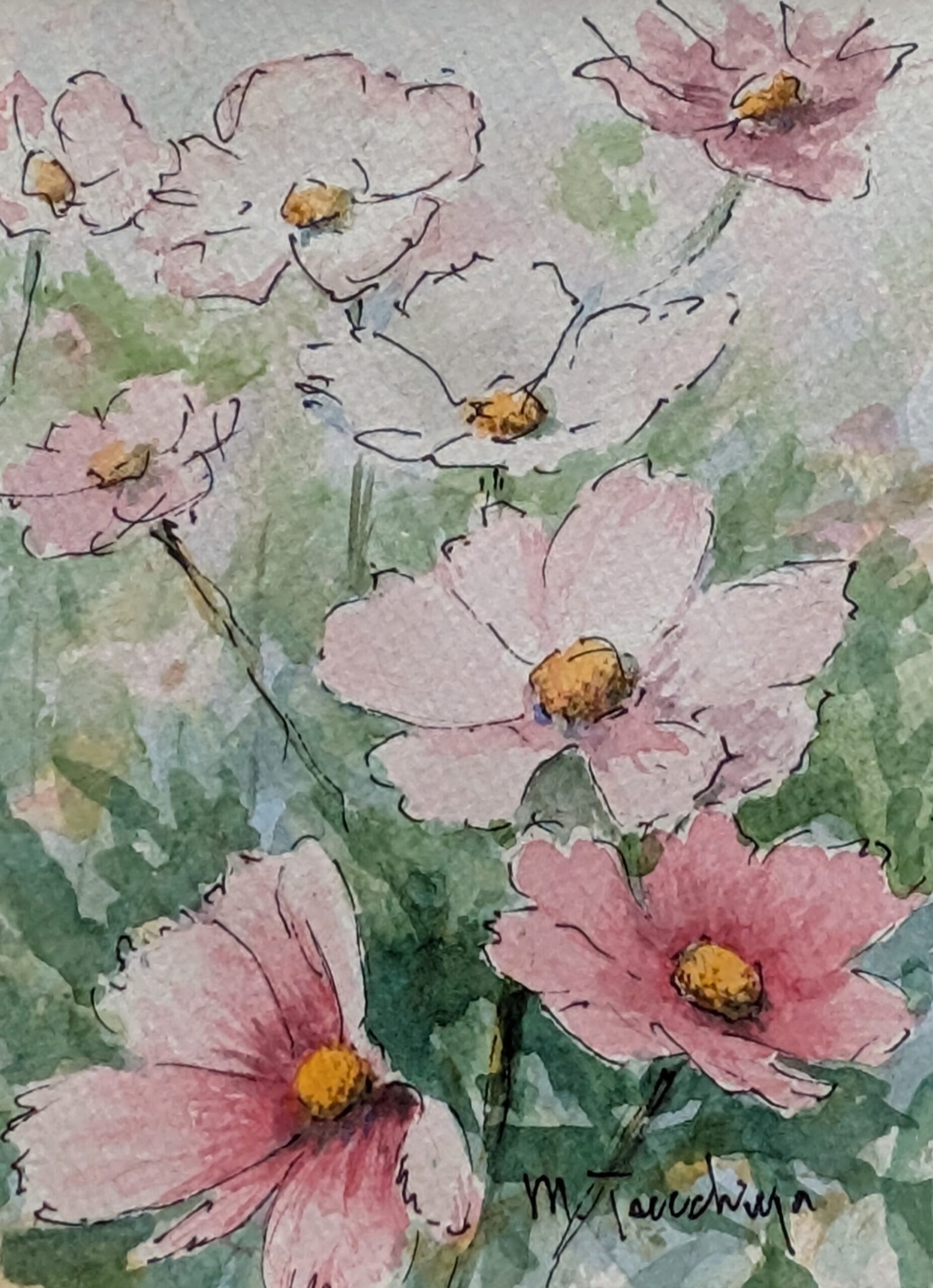 自宅で「ミニ作品展」をやっています。 SM程「湖上の林」¥30,000 PC「ロベリアの鉢」¥22,000 SM「コスモス」¥30,000 SM「ポピー」¥30,000 PC程「カクテルグラスへ」¥32,000 PC「ビオラ」¥22,000 PC「バラのつぼみ」¥22,000 PC「小さな花瓶」¥22,000 PC「柔らかに」¥22,000 PC程「ビョウヤナギ」¥32,000